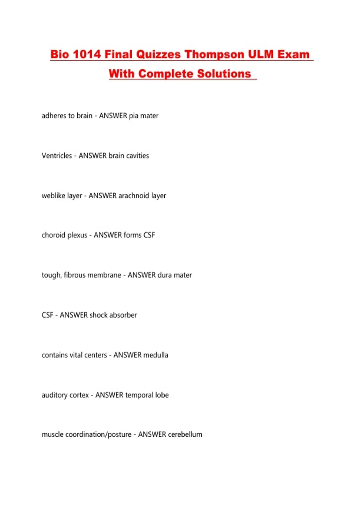 Bio 1014 Final Quizzes Thompson ULM Exam With Complete Solutions ...