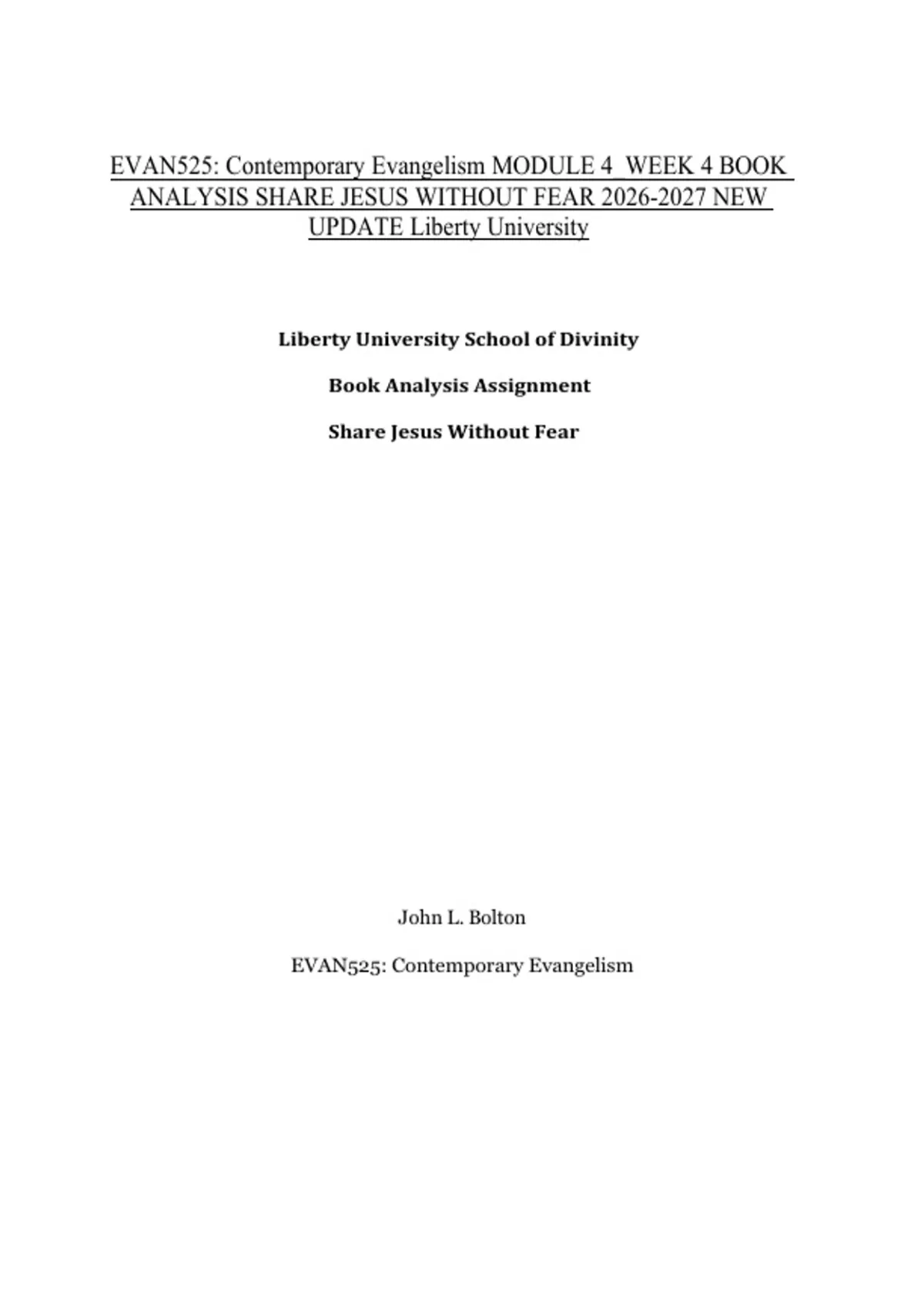 EVAN525: Contemporary Evangelism MODULE 4_WEEK 4 BOOK ANALYSIS SHARE JESUS WITHOUT FEAR NEW UPDATE Liberty University