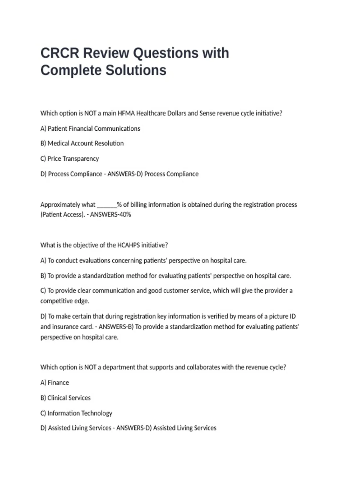 (Patient Access). - ANSWERS-40%