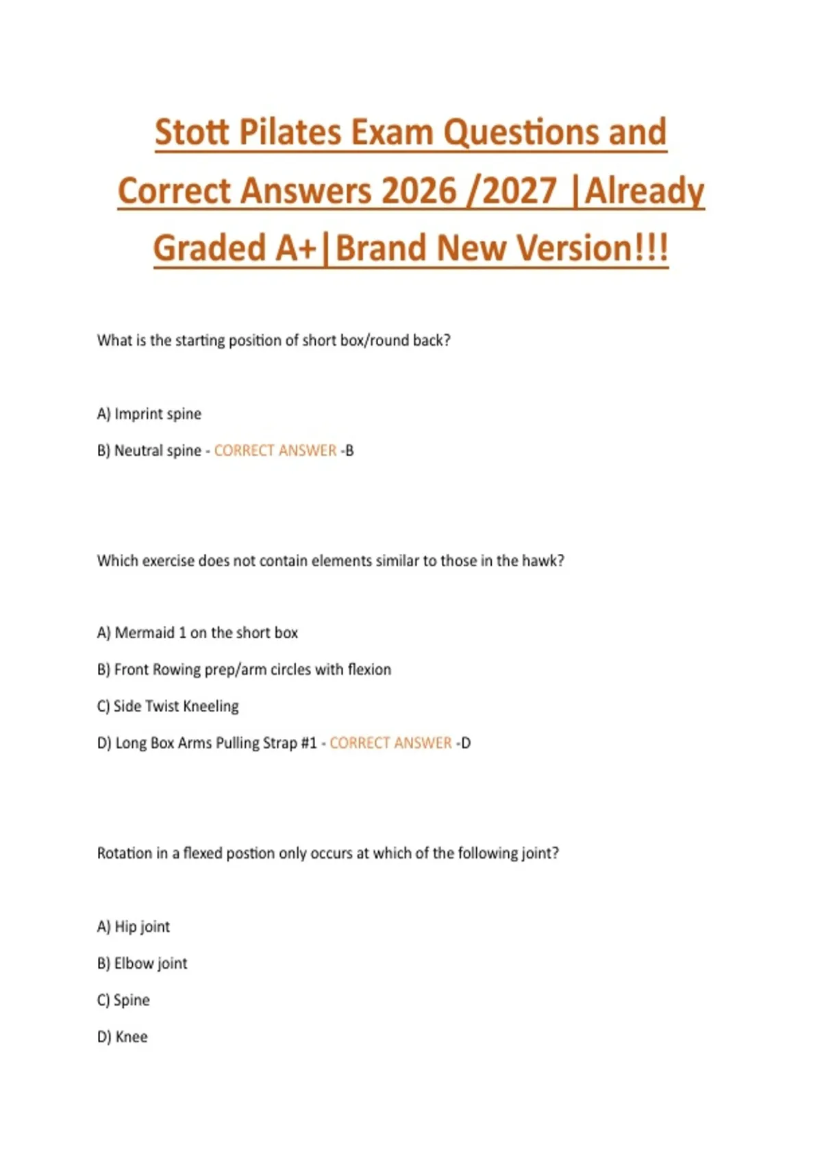 Correct Answers 2026 /2027 |Already