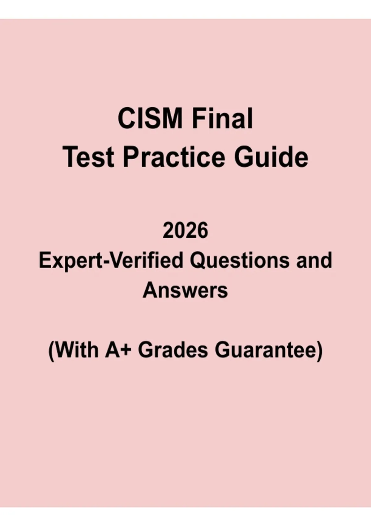 The CISM Final Test Practice Guide 2025/2026 offers verified practice questions and detailed answers tailored to ISACA’s core CISM domains, including governance, risk management, incident response, and information security program development. This A+ grade guaranteed resource provides exam-style scenarios, expert explanations, and targeted review content designed to strengthen comprehension and ensure candidates are fully prepared to excel in the CISM certification exam.