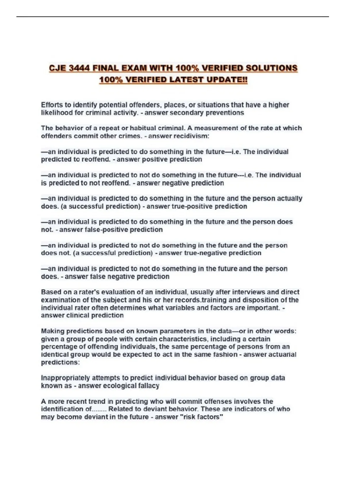 CJE 3444 FINAL EXAM WITH 100% VERIFIED SOLUTIONS 100% VERIFIED LATEST UPDATE!!