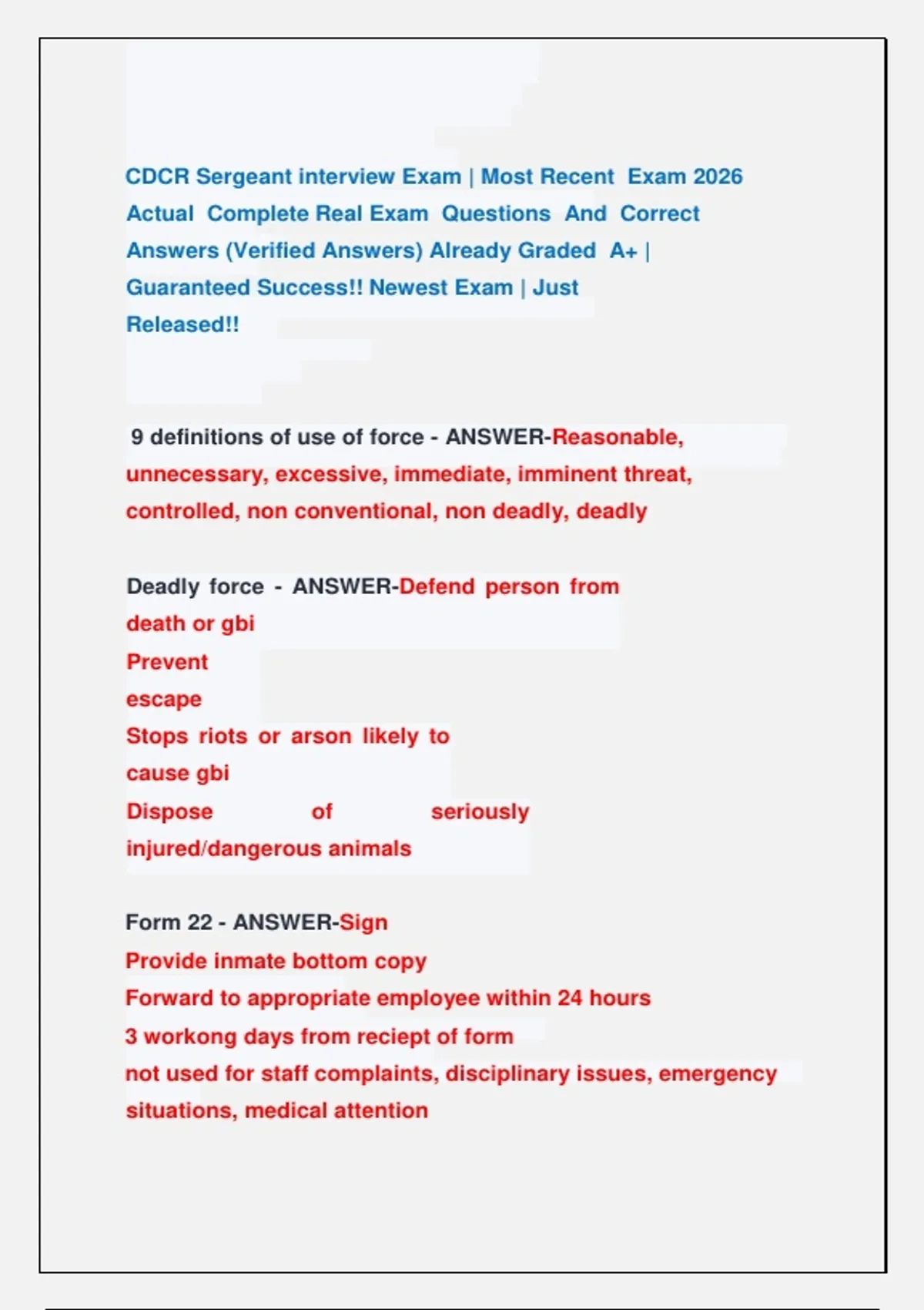 CDCR Sergeant interview Exam | Most Recent Exam 2026 Actual Complete Real Exam Questions And Correct Answers (Verified Answers) Already Graded A+ | Guaranteed Success!! Newest Exam | Just Released!! CDCR Sergeant interview Exam | Most Recent Exam 2026 Actual Complete Real Exam Questions And Correct Answers (Verified Answers) Already Graded A+ | Guaranteed Success!! Newest Exam | Just Released!! CDCR Sergeant interview Exam | Most Recent Exam 2026 Actual Complete Real Exam Questions And Correct Answers (Verified Answers) Already Graded A+ | Guaranteed Success!! Newest Exam | Just Released!! CDCR Sergeant interview Exam | Most Recent Exam 2026 Actual Complete Real Exam Questions And Correct Answers (Verified Answers) Already Graded A+ | Guaranteed Success!! Newest Exam | Just Released!! CDCR Sergeant interview Exam | Most Recent Exam 2026 Actual Complete Real Exam Questions And Correct Answers (Verified Answers) Already Graded A+ | Guaranteed Success!! Newest Exam | Just Released!!