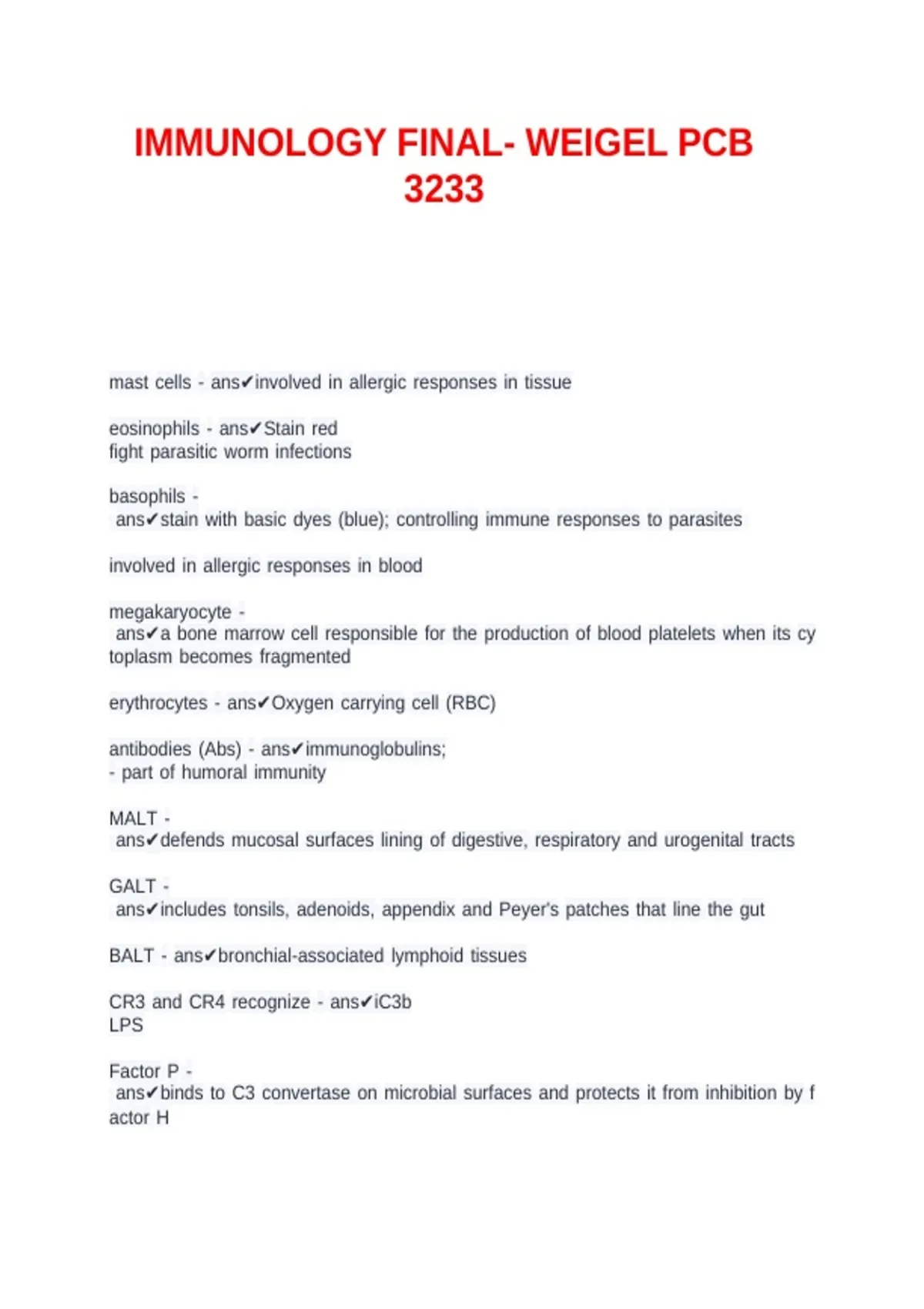IMMUNOLOGY FINAL- WEIGEL PCB 3233