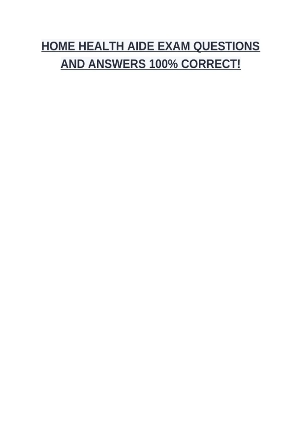 HOME HEALTH AIDE EXAM QUESTIONS AND ANSWERS 100% CORRECT!