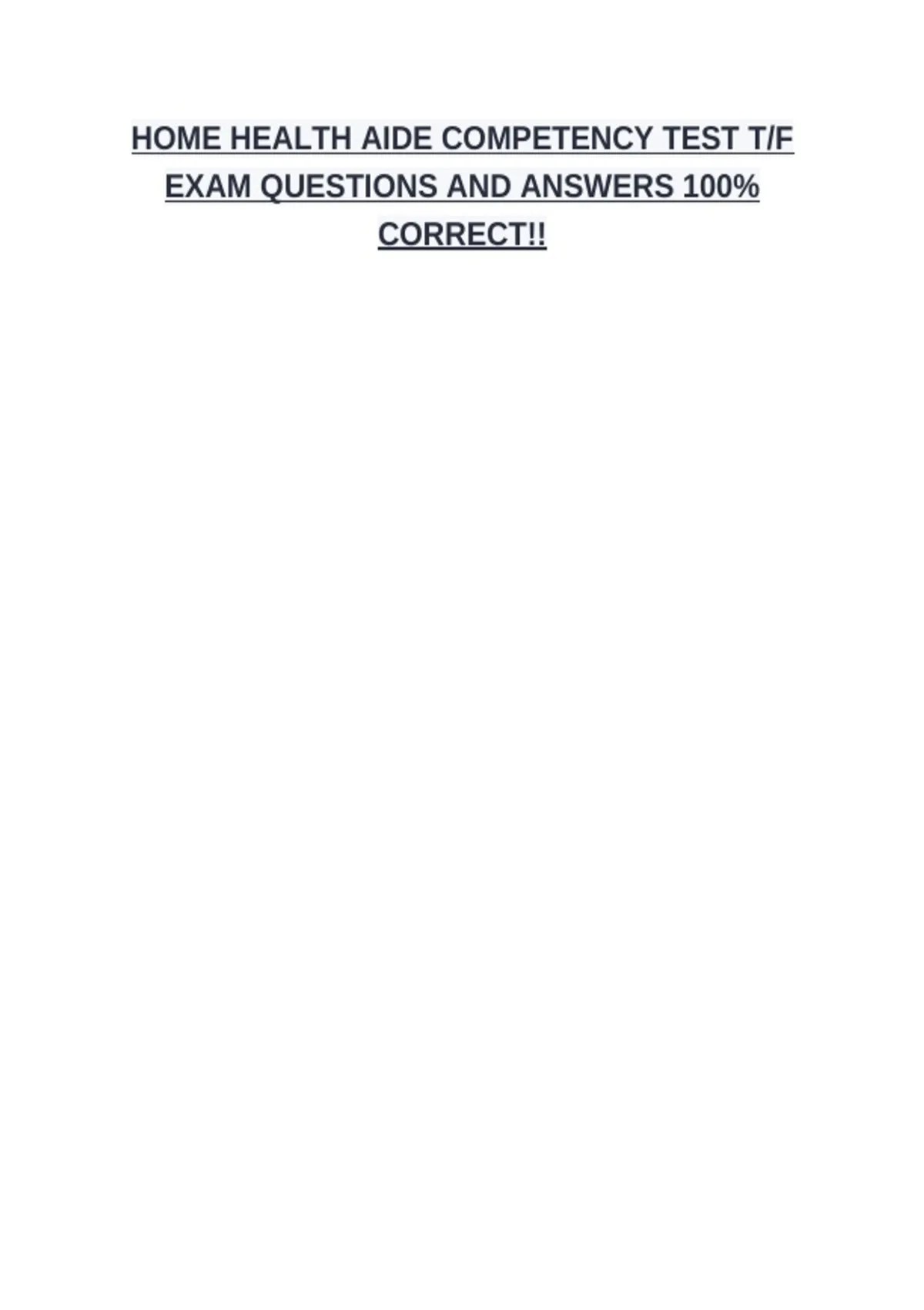 HOME HEALTH AIDE COMPETENCY TEST T/F EXAM QUESTIONS AND ANSWERS 100% CORRECT!!