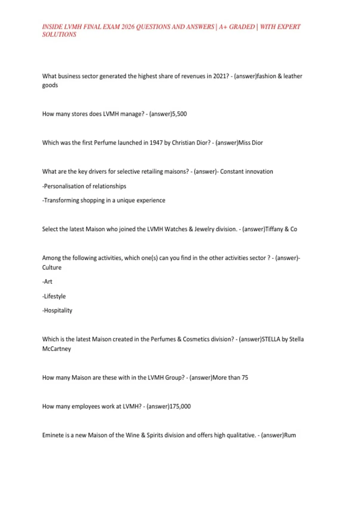 , INSIDE LVMH FINAL EXAM 2026 QUESTIONS AND ANSWERS | A+ GRADED | WITH EXPERT