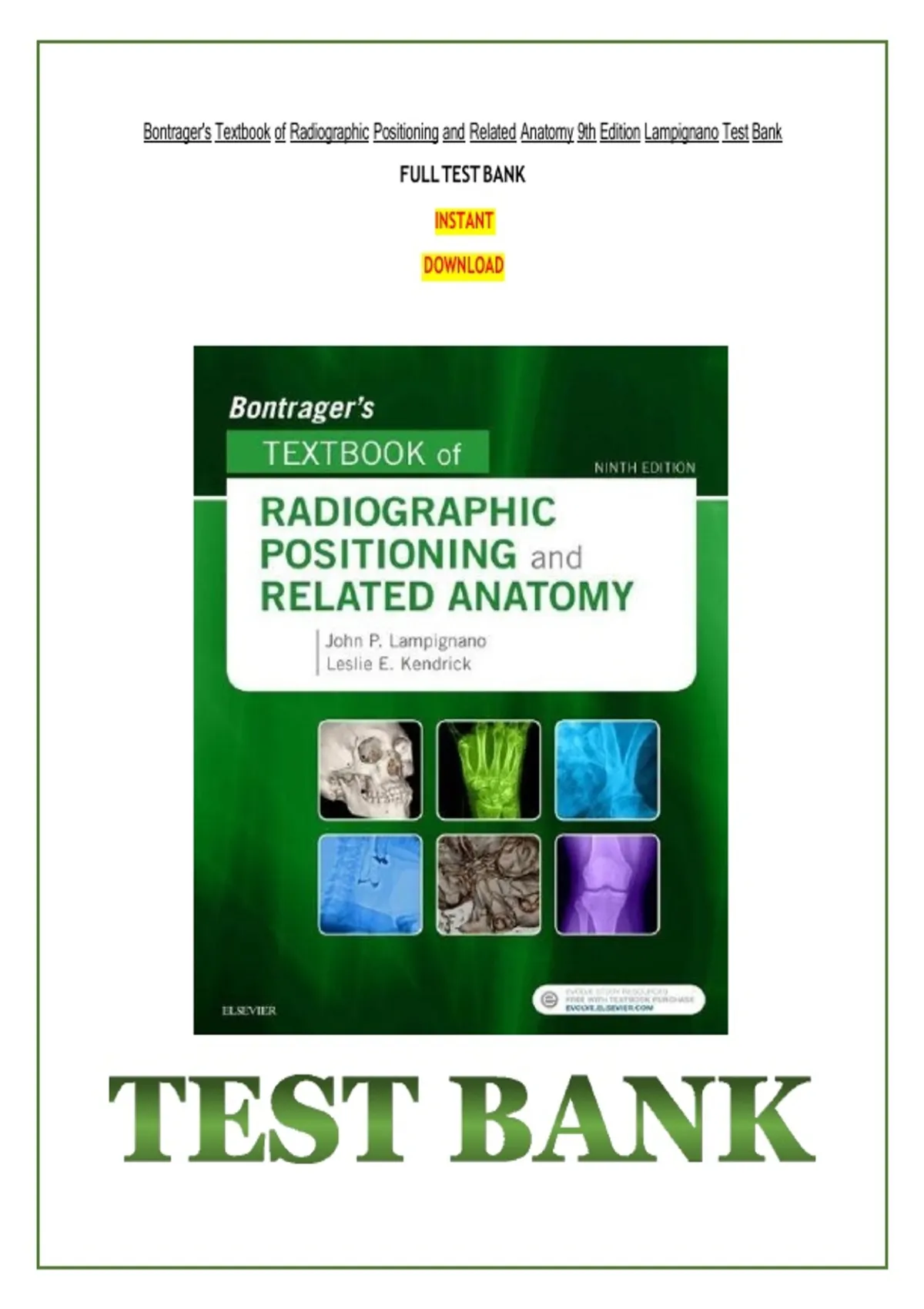 , Bontrager's Textbook of Radiographic Positioning and Related Anatomy 9th Edition Lampignano Test