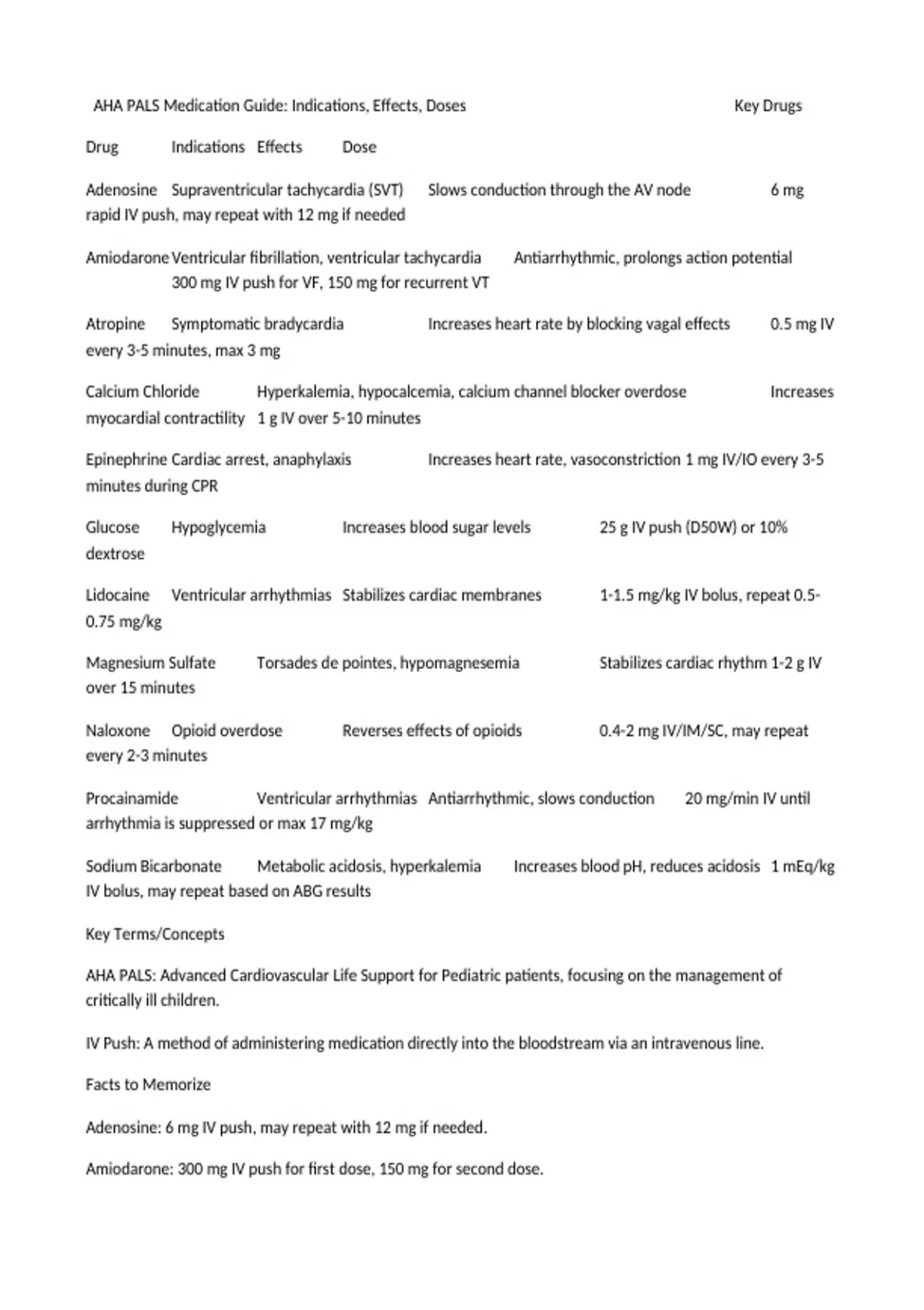 AHA PALS Medication Guide: Indications, Effects, Doses Key Drugs