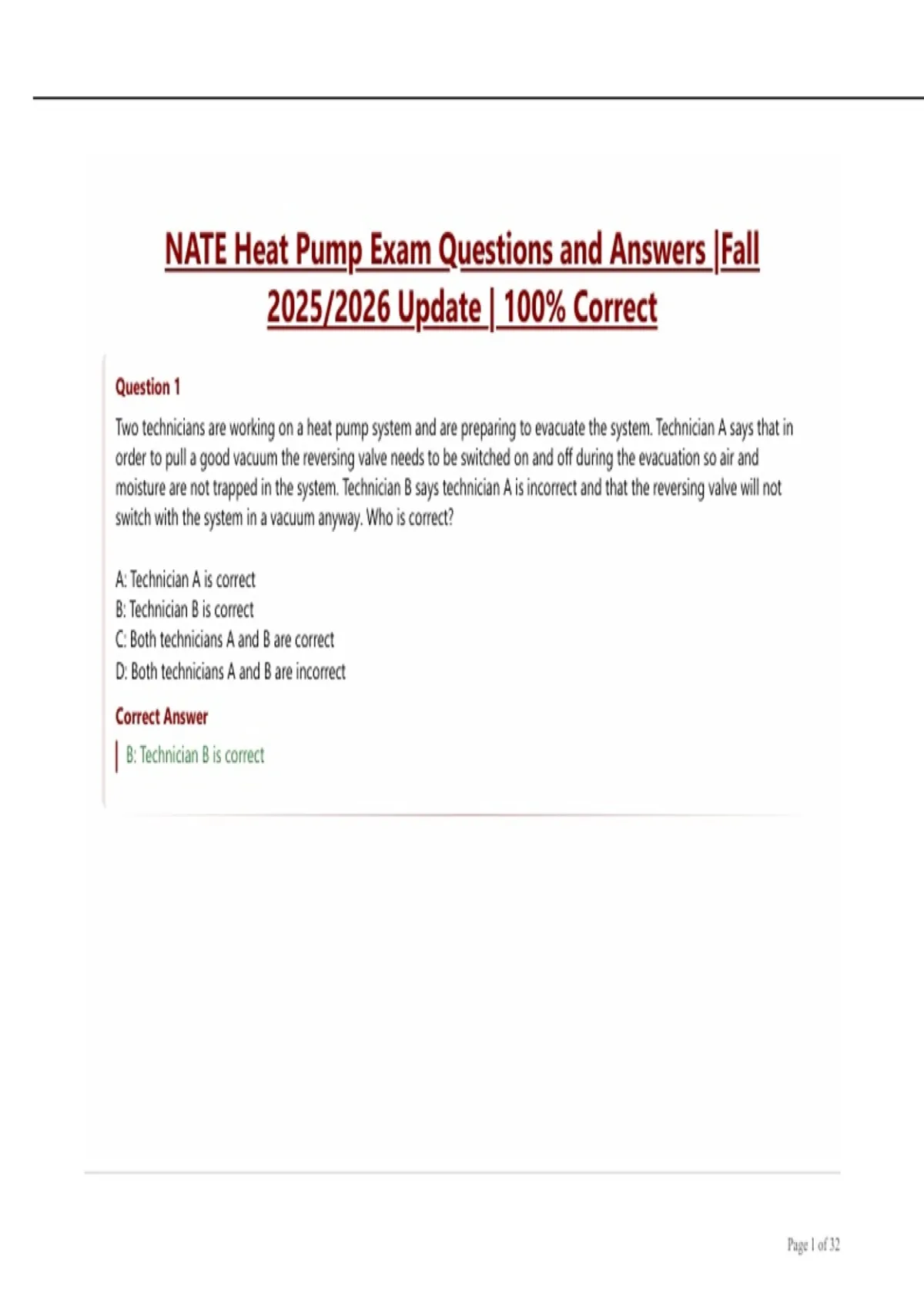 NATE Heat Pump Exam Questions and Answers |Fall