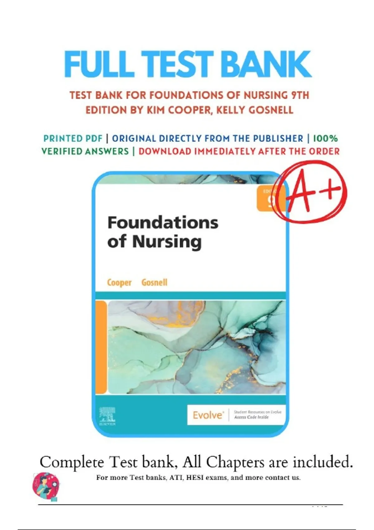 TEST BANK FOR FOUNDATIONS AND ADULT HEALTH NURSING 9th Edition BY KIM COOPER KELLY