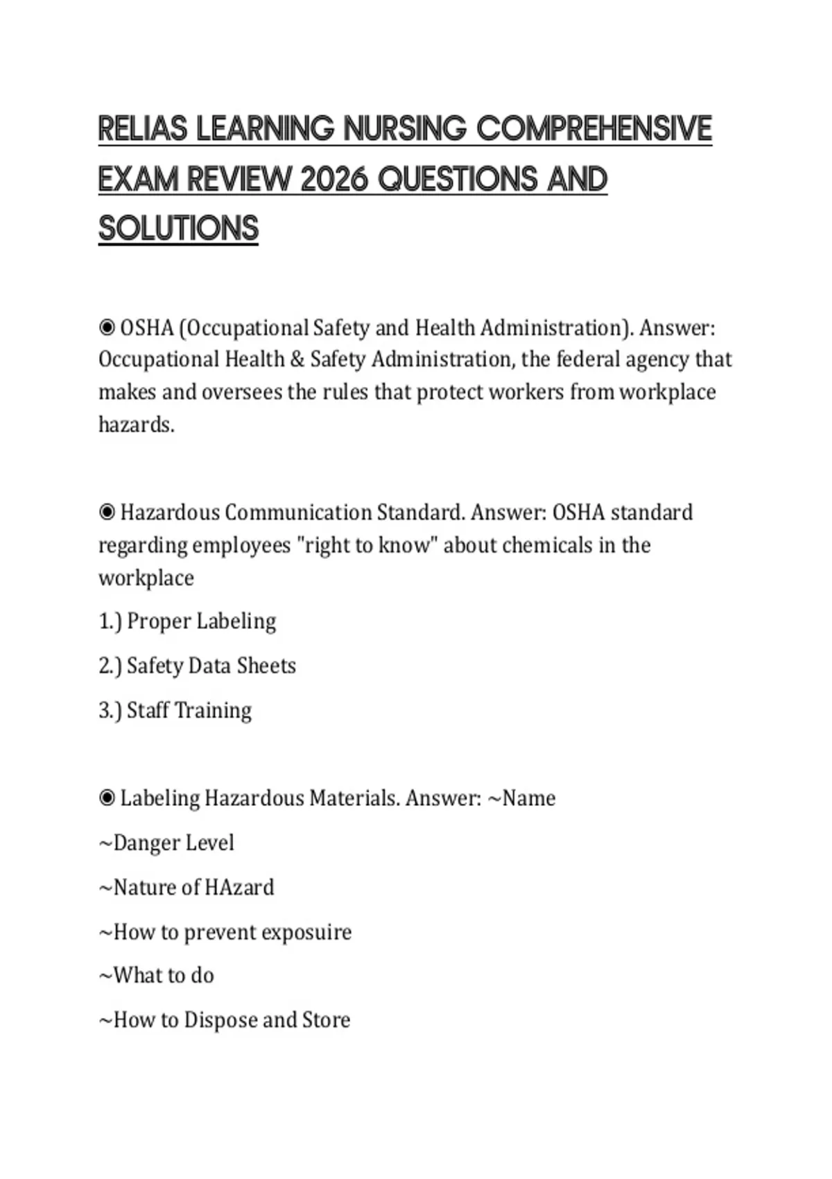 , ◉ Safety Data Sheet (SDS). Answer: an OSHA-required document