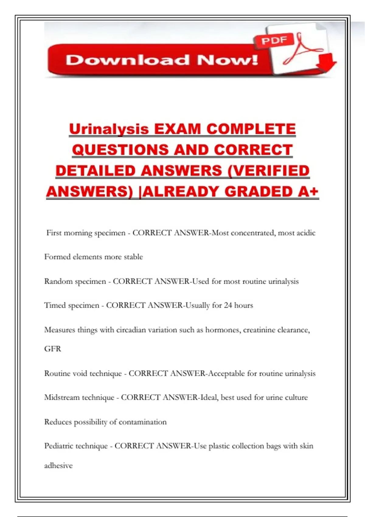 Midstream Collection container - CORRECT ANSWER-Disposable, sterile,
