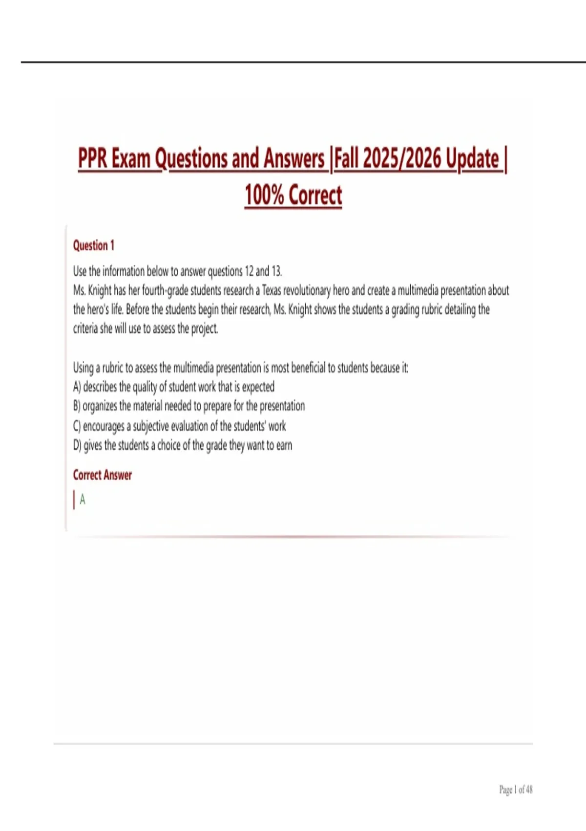 PPR Exam Questions and Answers |Fall 2025/2026 Update |
