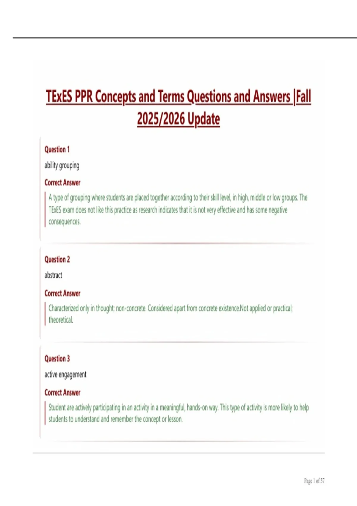 TExES PPR Concepts and Terms Questions and Answers |Fall