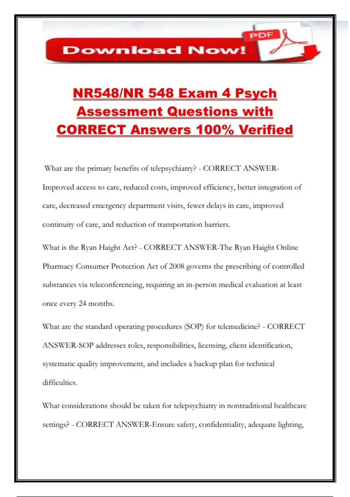 NR548/NR 548 Exam 4 Psych Assessment Questions with CORRECT Answers 100% Verified