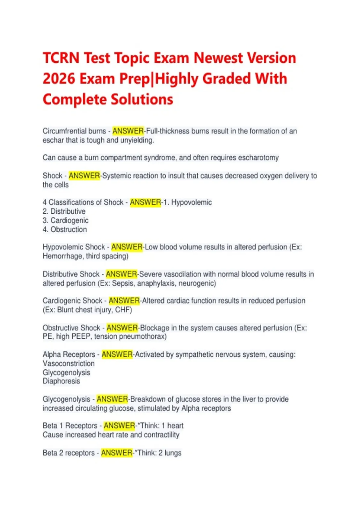 TCRN Exam Prep 2026: Newest Version Test Topics & Complete Solutions