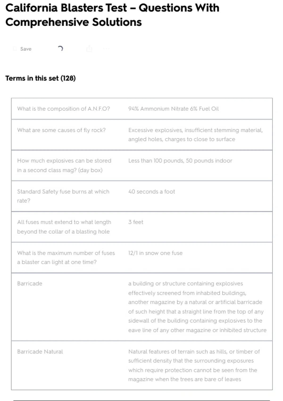 What is the composition of A.N.F.O? 94% Ammonium Nitrate 6% Fuel Oil
