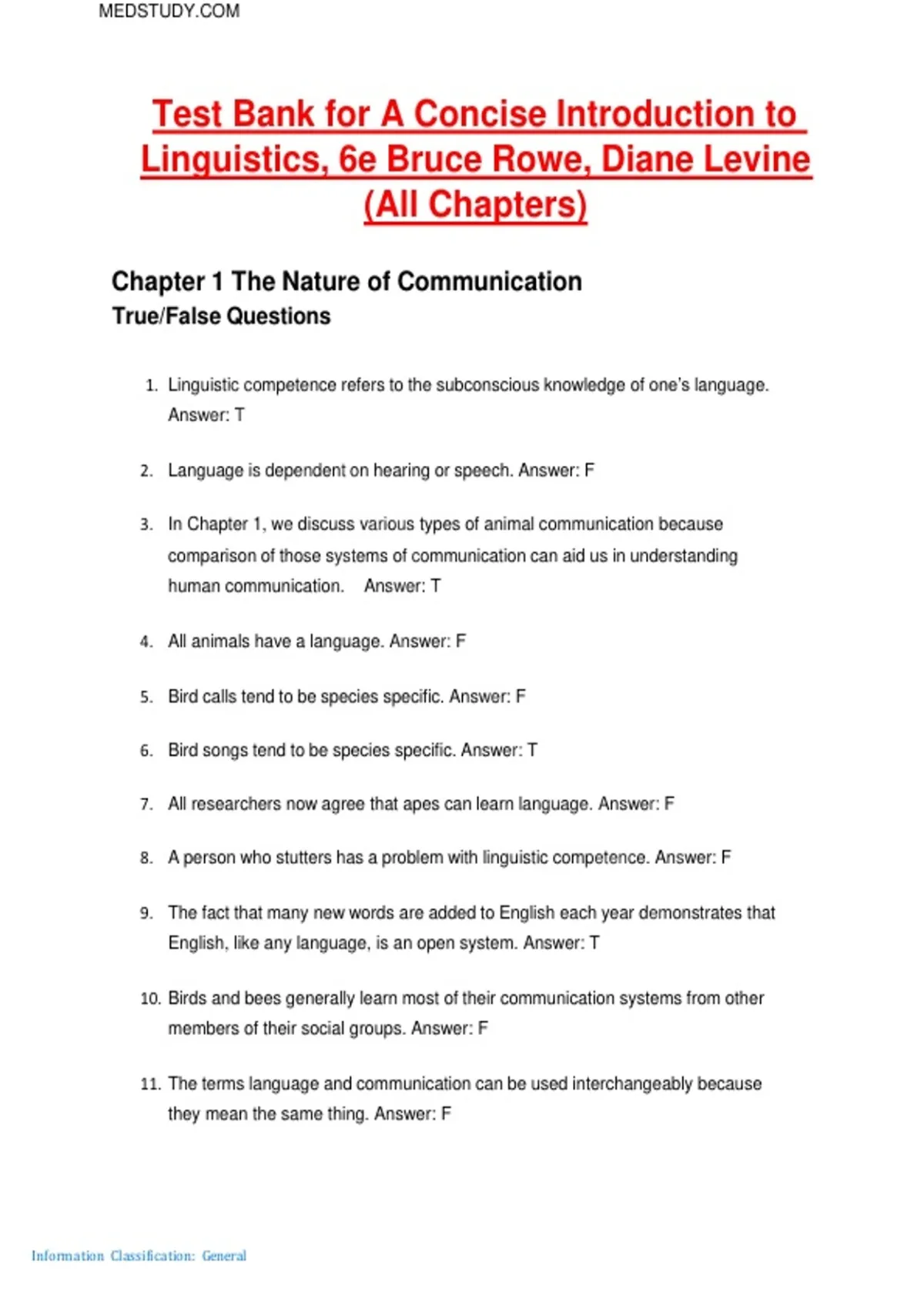 8. A person who stutters has a problem with linguistic competence. Answer: F