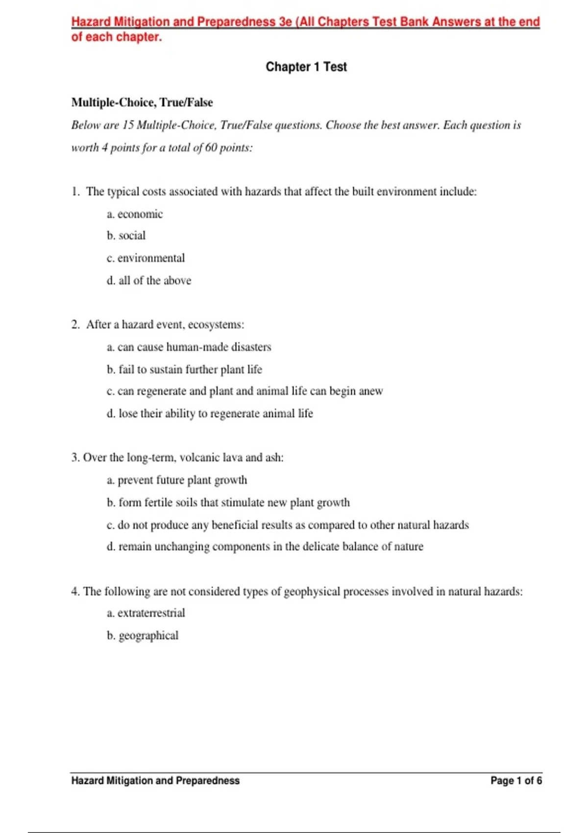 ,Hazard Mitigation and Preparedness 3e (All Chapters Test Bank Answers at the end