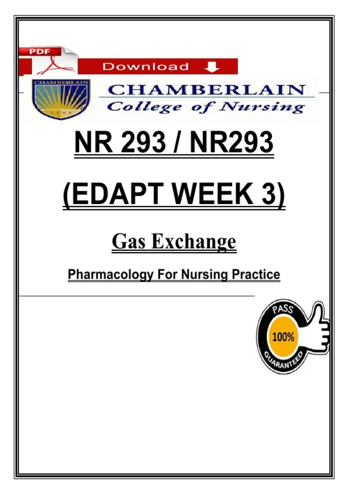 INSTANT PDF DOWNLOAD — This NR 293 / NR293 EDAPT Week 3 study guide focuses on Gas Exchange within Pharmacology for Nursing Practice. Topics include oxygenation and ventilation physiology, gas diffusion, hypoxia types, acid–base balance, respiratory assessment, ABG interpretation basics, pharmacologic agents affecting respiration, oxygen delivery systems, bronchodilators, corticosteroids, respiratory depressants, adverse effects, contraindications, patient monitoring, and nursing interventions. Content is clearly structured to align with EDAPT quizzes, exams, and Chamberlain NR 293 coursework, making it ideal for focused review and exam preparation. Digital download only—no physical product will be shipped. NR 293 notes, NR293 week 3, EDAPT week 3, gas exchange nursing, oxygenation nursing, respiratory pharmacology, pharmacology nursing PDF, ABG nursing, hypoxia nursing, Chamberlain NR 293, EDAPT nursing notes, nursing exam study guide, nursing pharmacology study, respiratory assessment nursing, oxygen therapy nursing, nursing school pharmacology