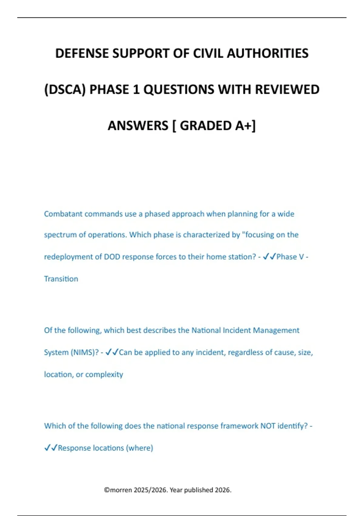 (DSCA) PHASE 1 QUESTIONS WITH REVIEWED