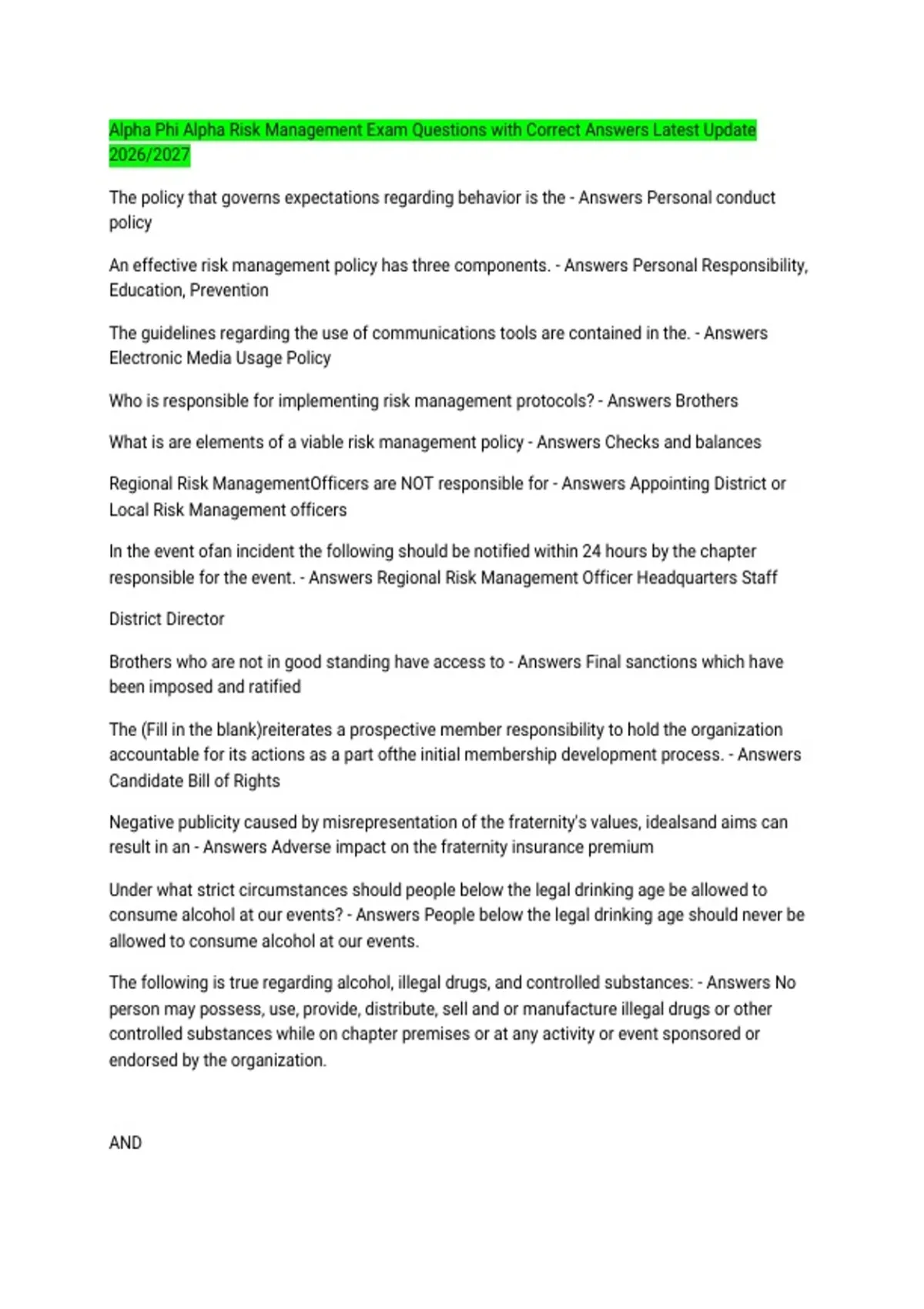 The following is true regarding alcohol, illegal drugs, and controlled substances: - Answers No