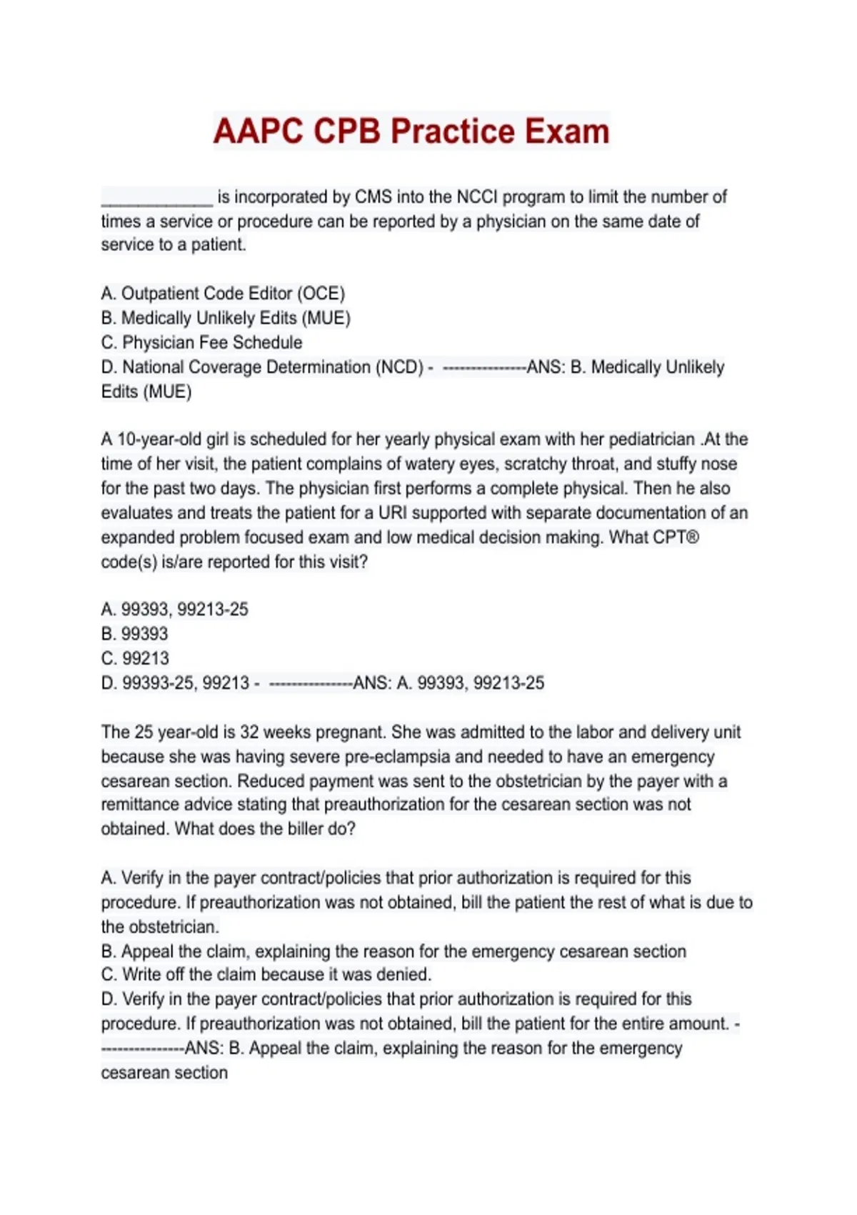 AAPC CPB Practice Exam Questions and correct Answers (100% VERIFIED)| 2026/2027