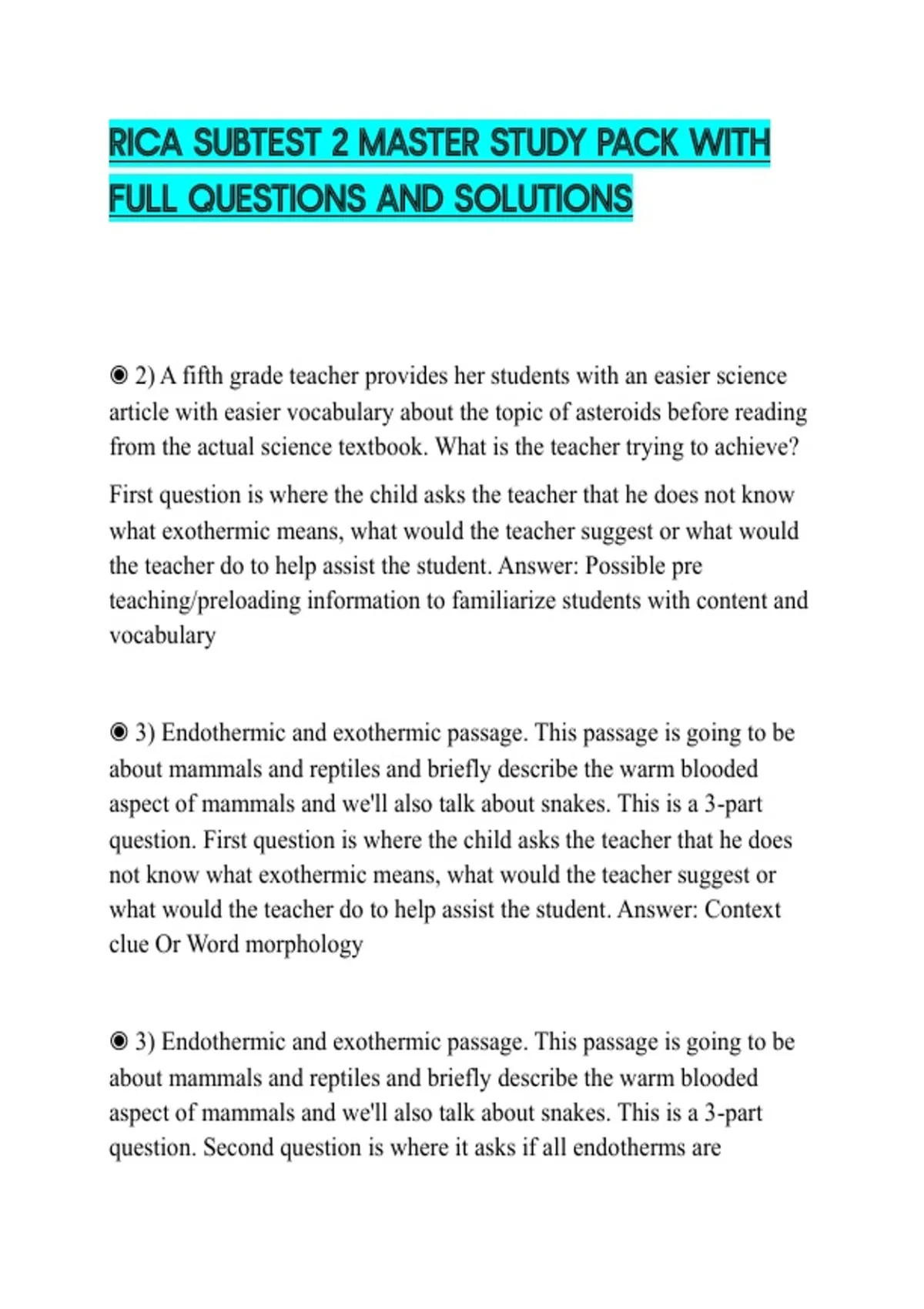◉ 2) A fifth grade teacher provides her students with an easier science