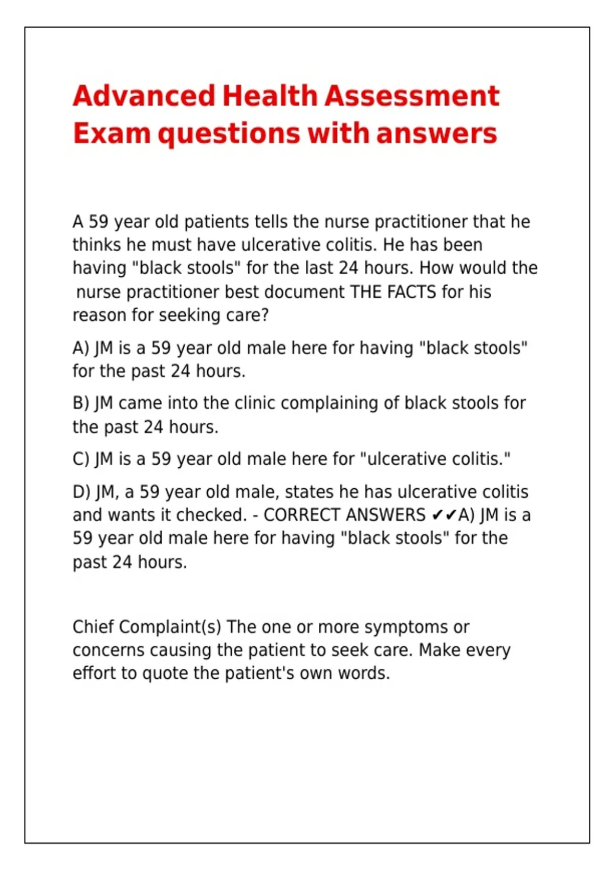and wants it checked. - CORRECT ANSWERS ✔✔A) JM is a