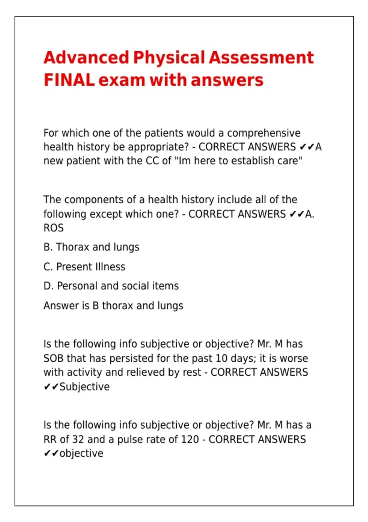 health history be appropriate? - CORRECT ANSWERS ✔✔A
