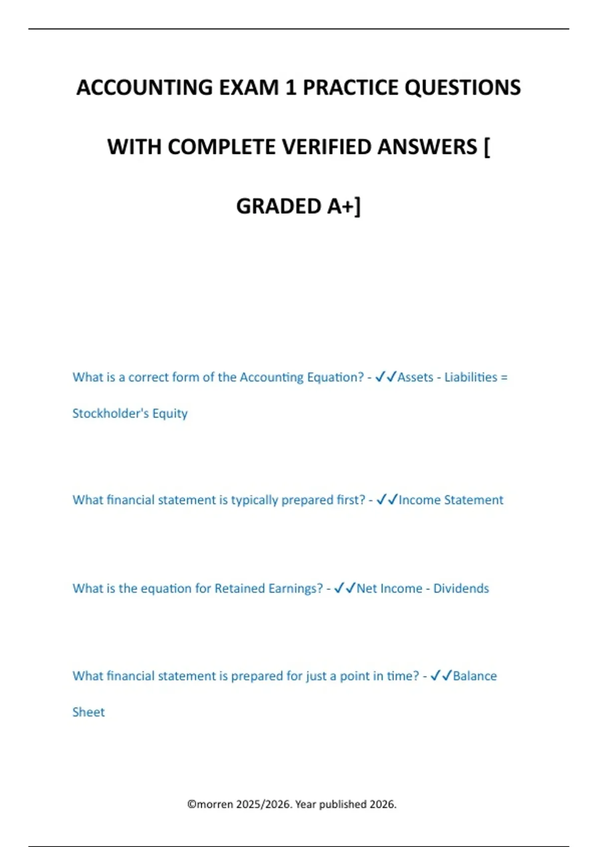 What is a correct form of the Accounting Equation? - ✔✔Assets - Liabilities =