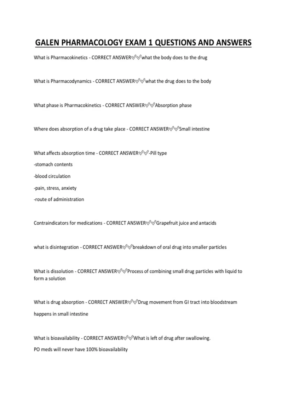 GALEN PHARMACOLOGY EXAM 1 QUESTIONS AND ANSWERS