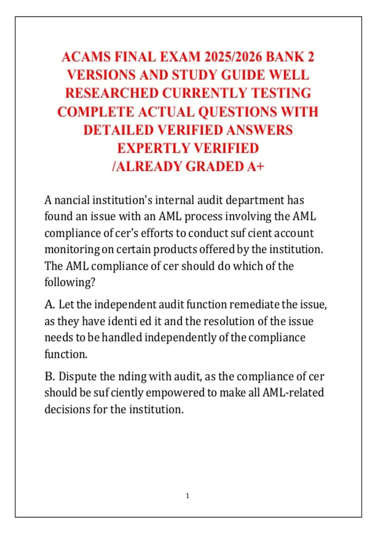 The AML compliance of cer should do which of the