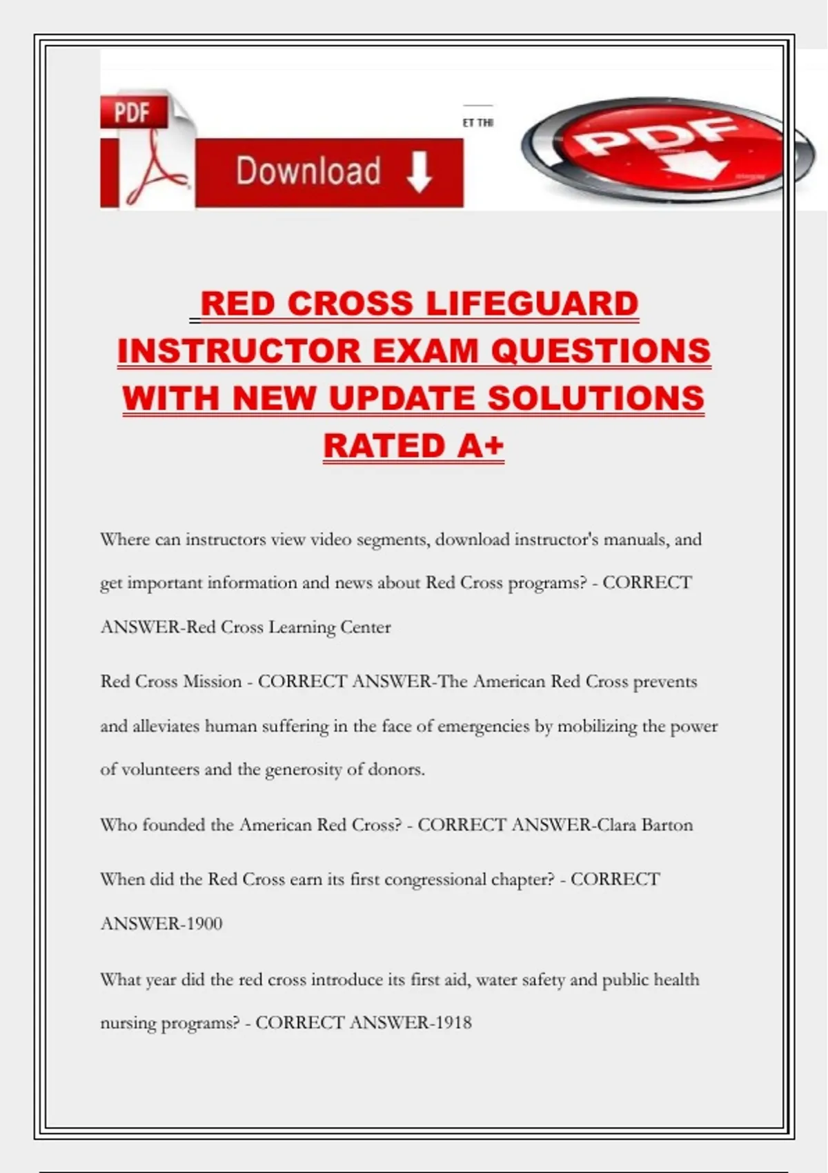 RED CROSS LIFEGUARD INSTRUCTOR EXAM QUESTIONS WITH NEW UPDATE SOLUTIONS RATED A+