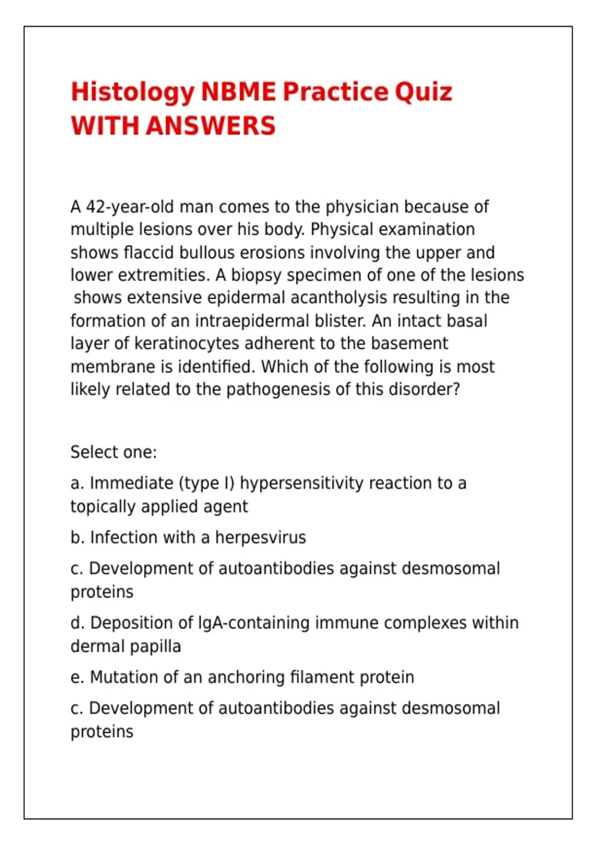 c. Development of autoantibodies against desmosomal