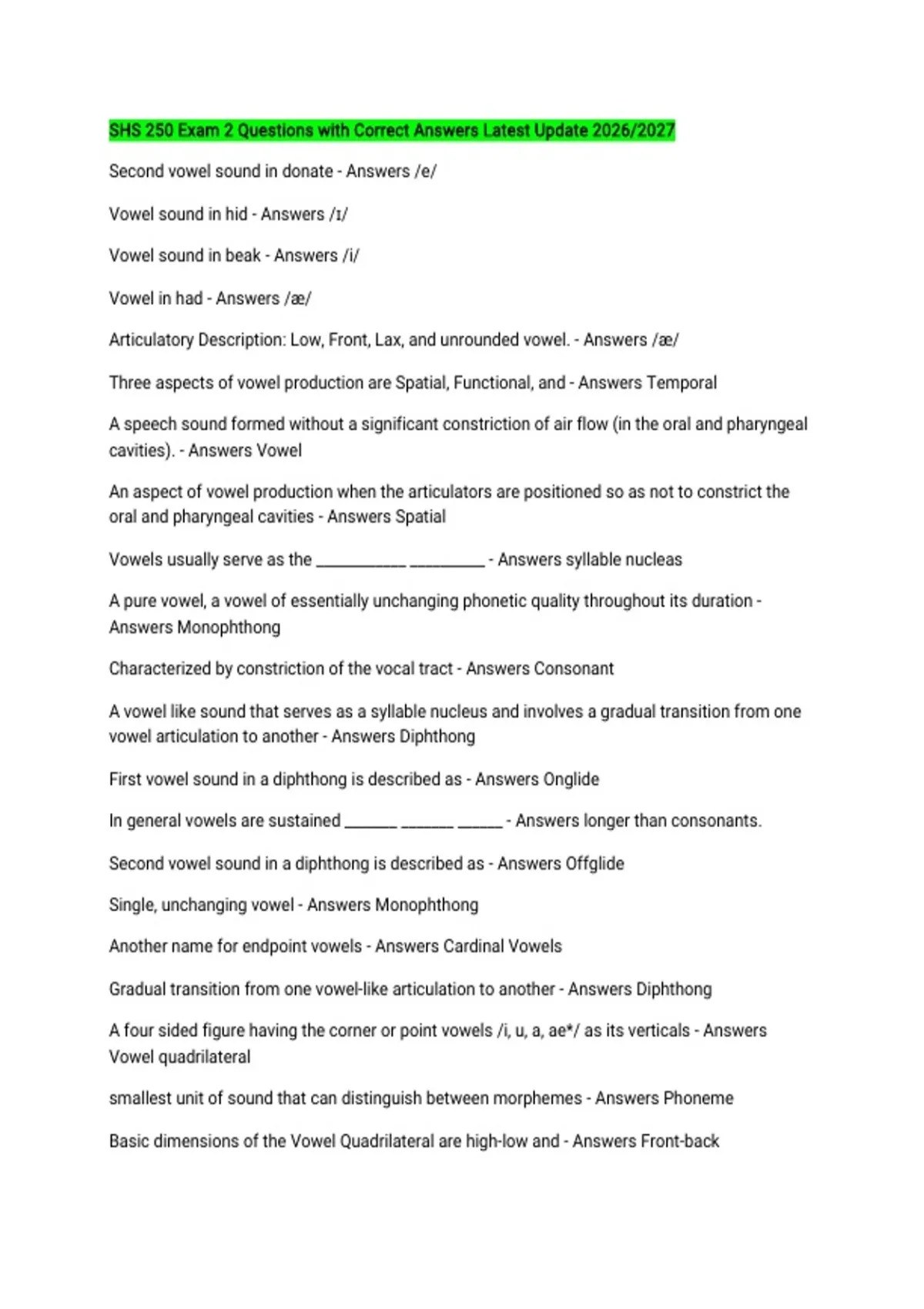 Answers Monophthong
