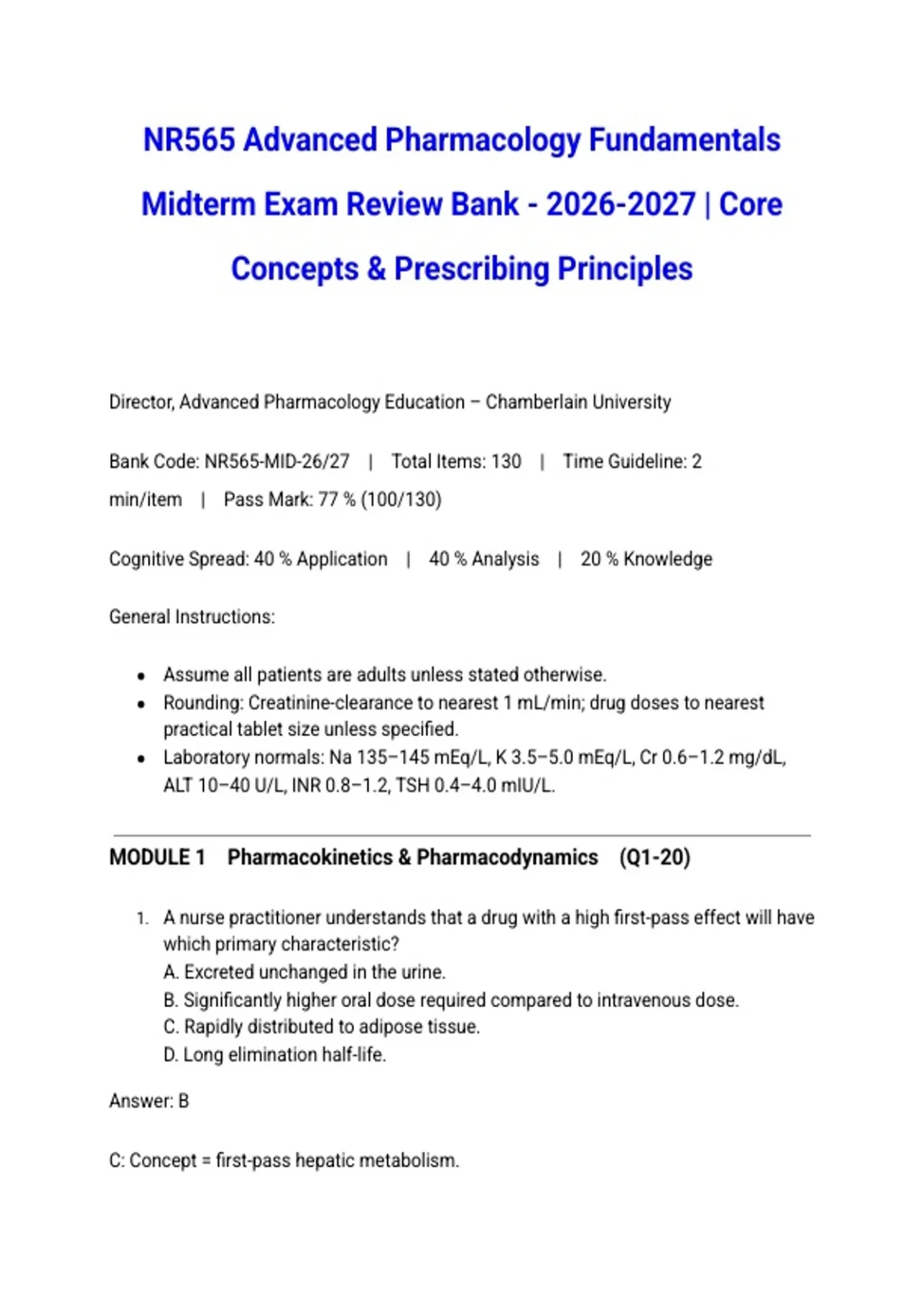 NR565 Advanced Pharmacology Fundamentals Midterm Exam Review Bank - | Core Concepts & Prescribing Principles
