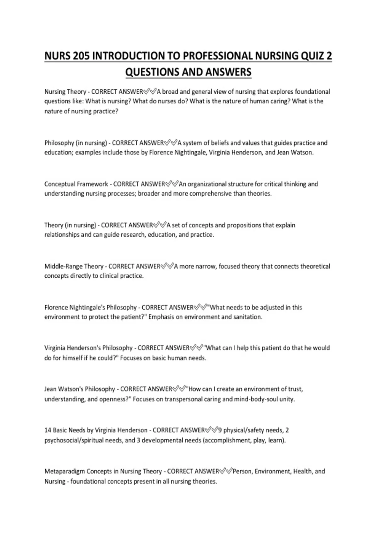 Nursing Theory - CORRECT ANSWER✅✅A broad and general view of nursing that explores foundational