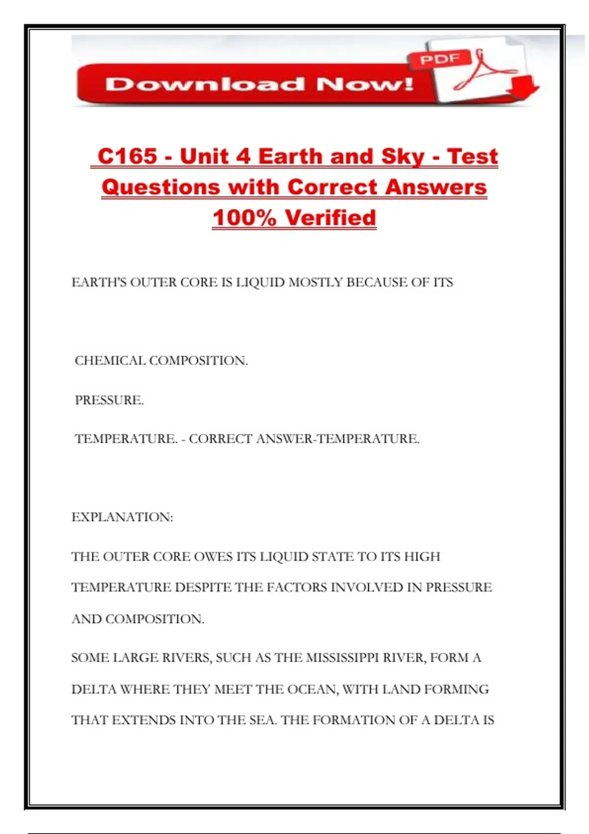 C165 - Unit 4 Earth and Sky - Test Questions with Correct Answers 100% Verified
