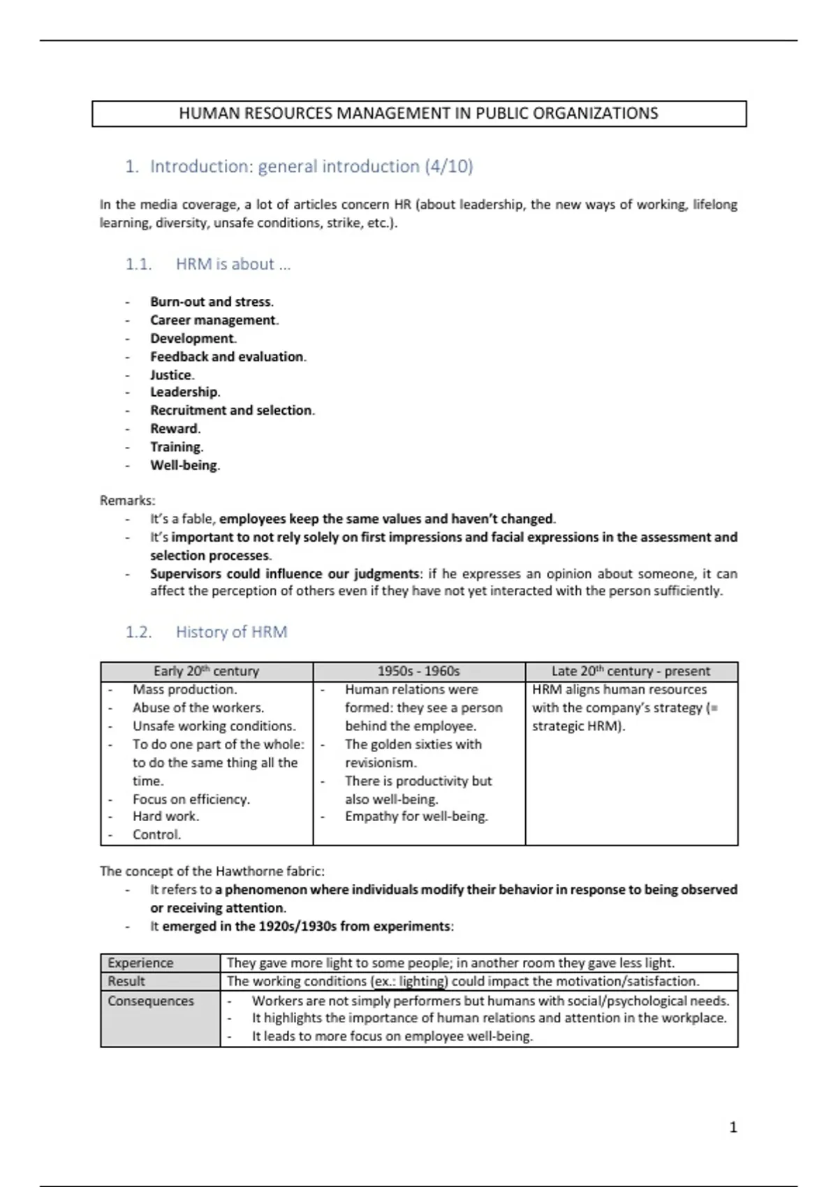 Class notes Human Resource Management in Public Organisations (F000811)