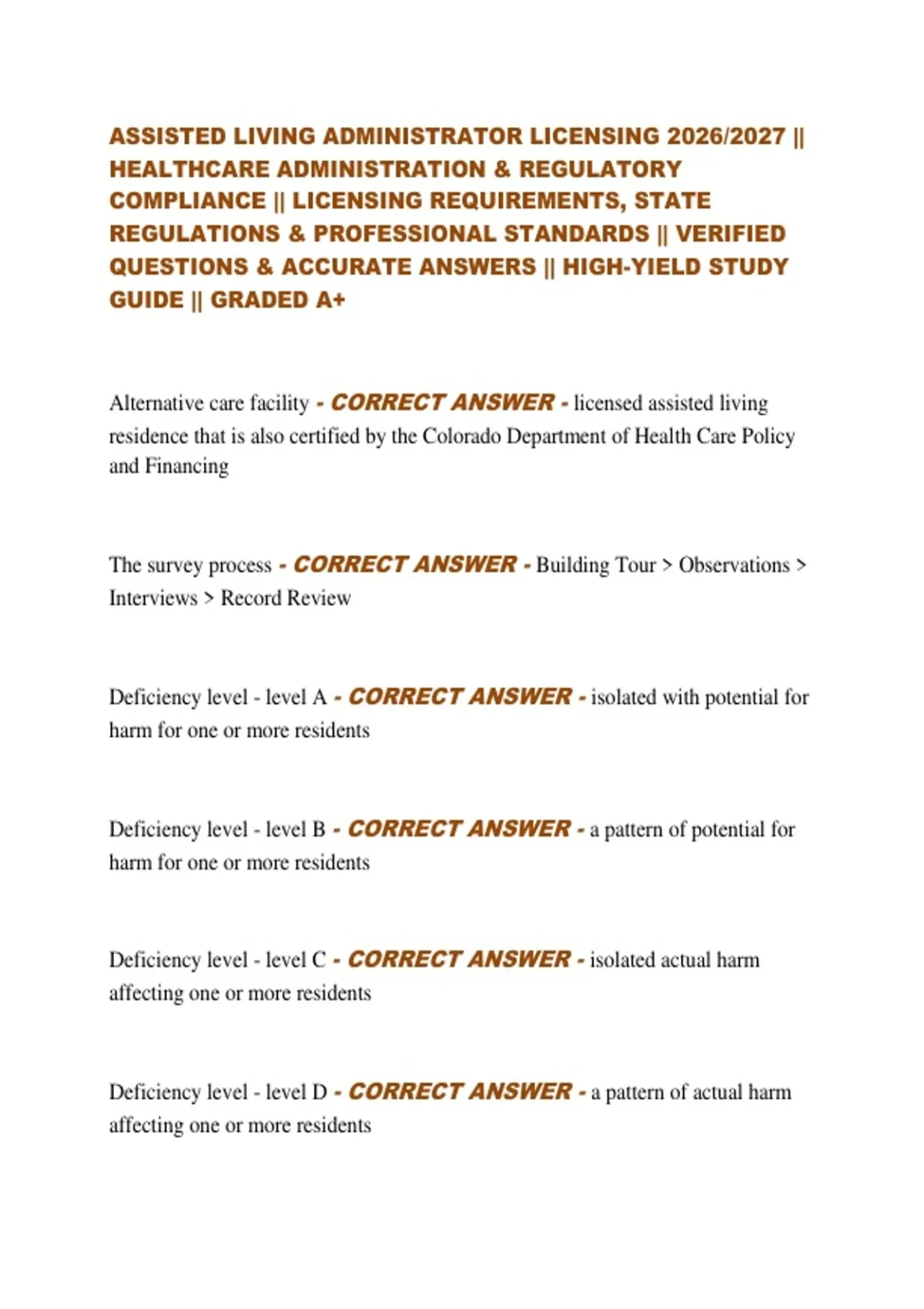Alternative care facility - CORRECT ANSWER - licensed assisted living