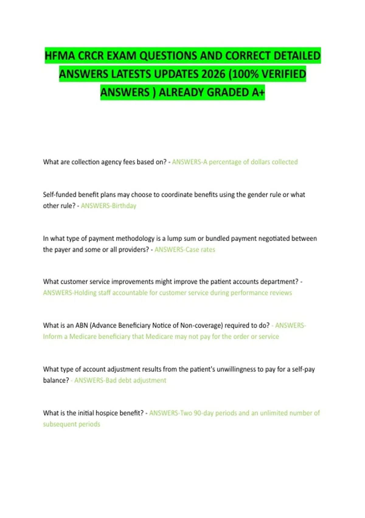 HFMA CRCR EXAM QUESTIONS AND CORRECT DETAILED