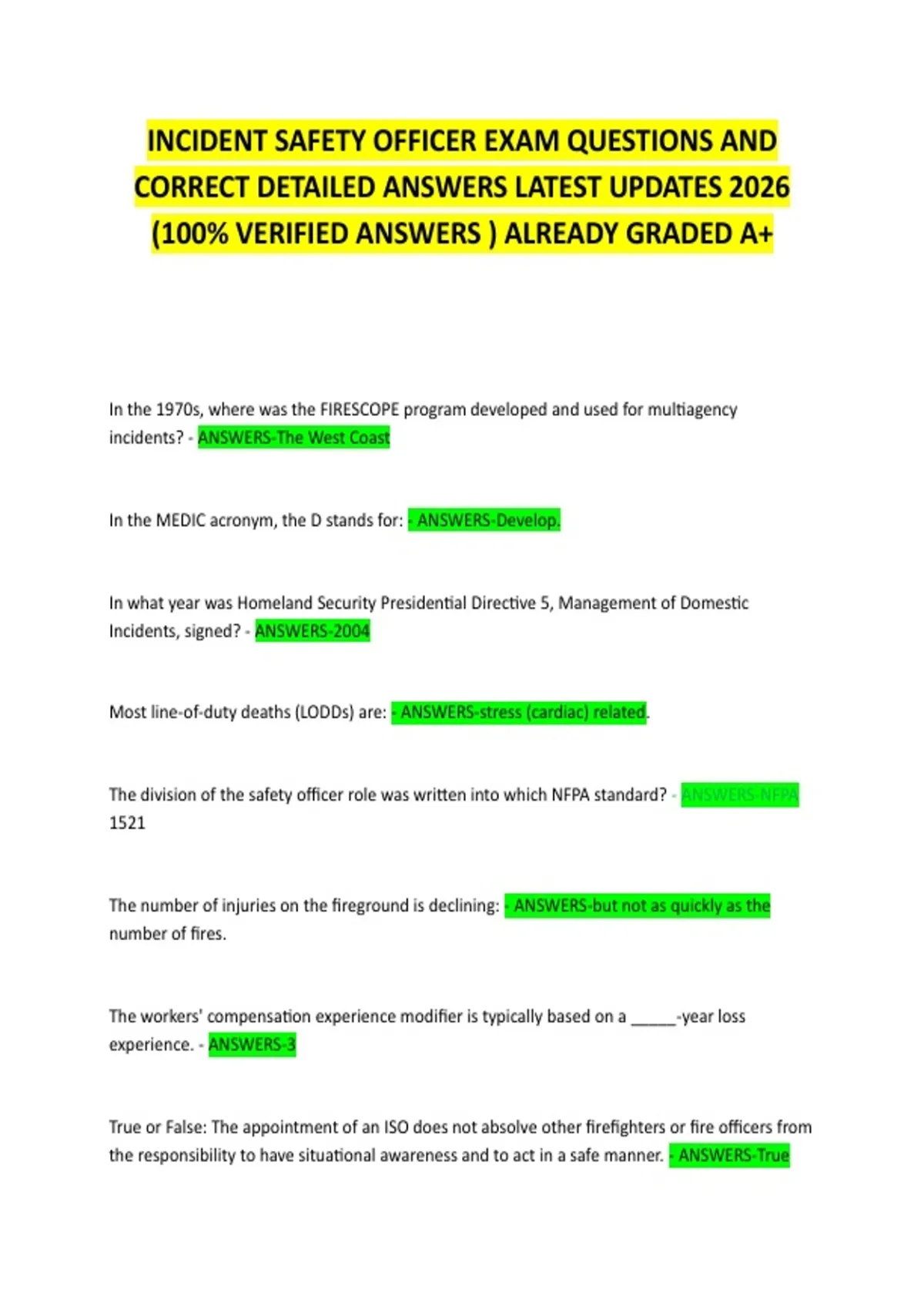 INCIDENT SAFETY OFFICER EXAM QUESTIONS AND