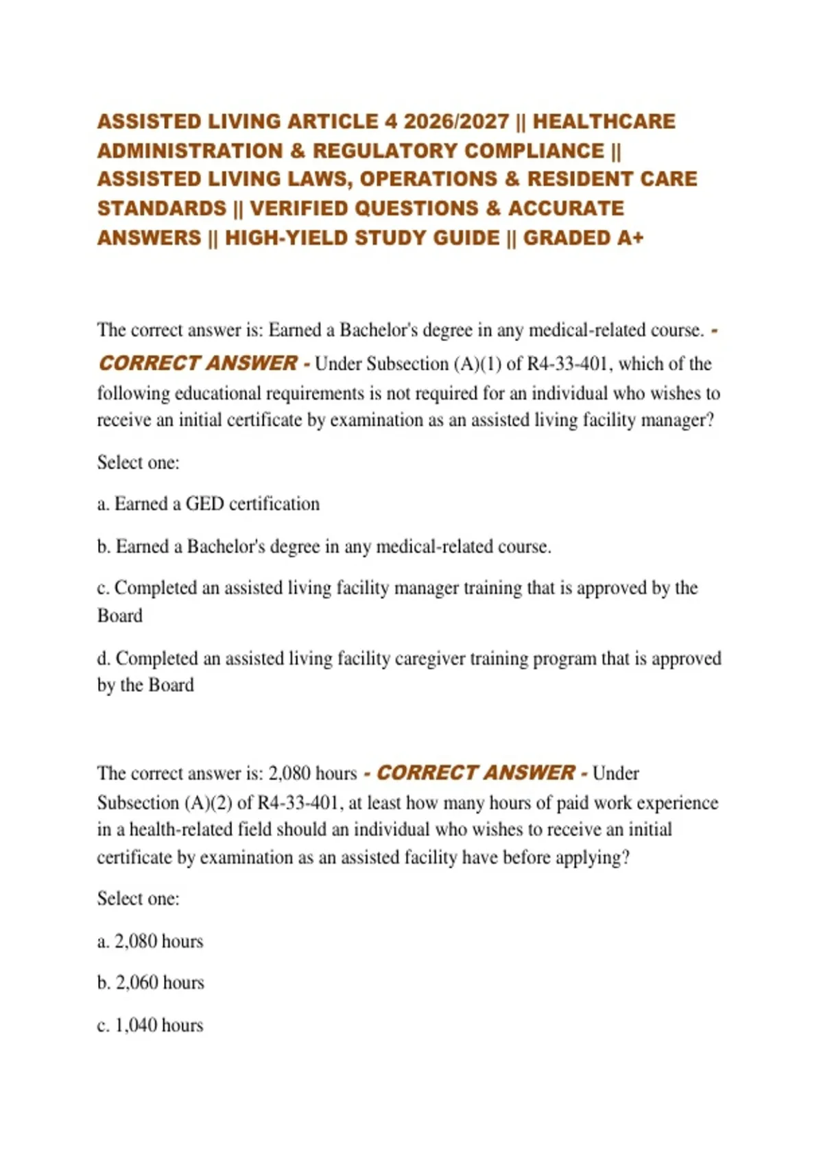 CORRECT ANSWER - Under Subsection (A)(1) of R4-33-401, which of the