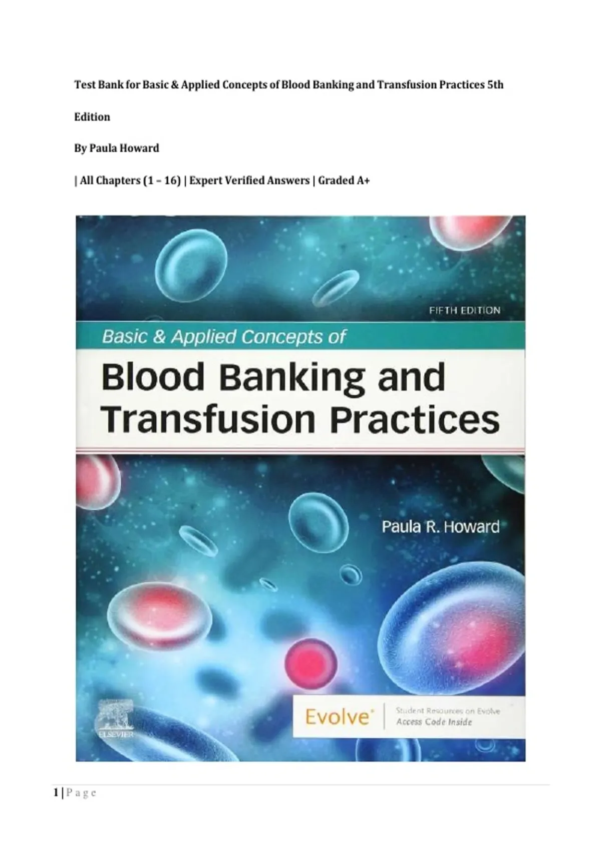 Test Bank for Basic & Applied Concepts of Blood Banking and Transfusion Practices 5th Edition By Paula Howard | All Chapters (1 – 16) | Expert Verified Answers | Graded A+