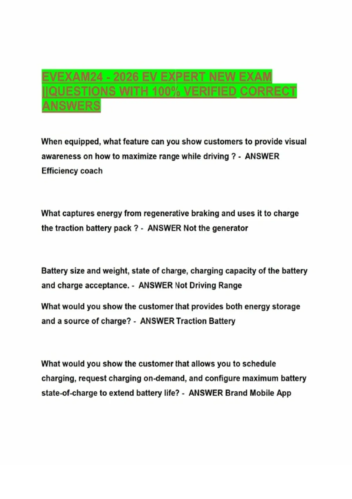 EVEXAM24 - 2026 EV EXPERT NEW EXAM ||QUESTIONS WITH 100% VERIFIED CORRECT ANSWERS