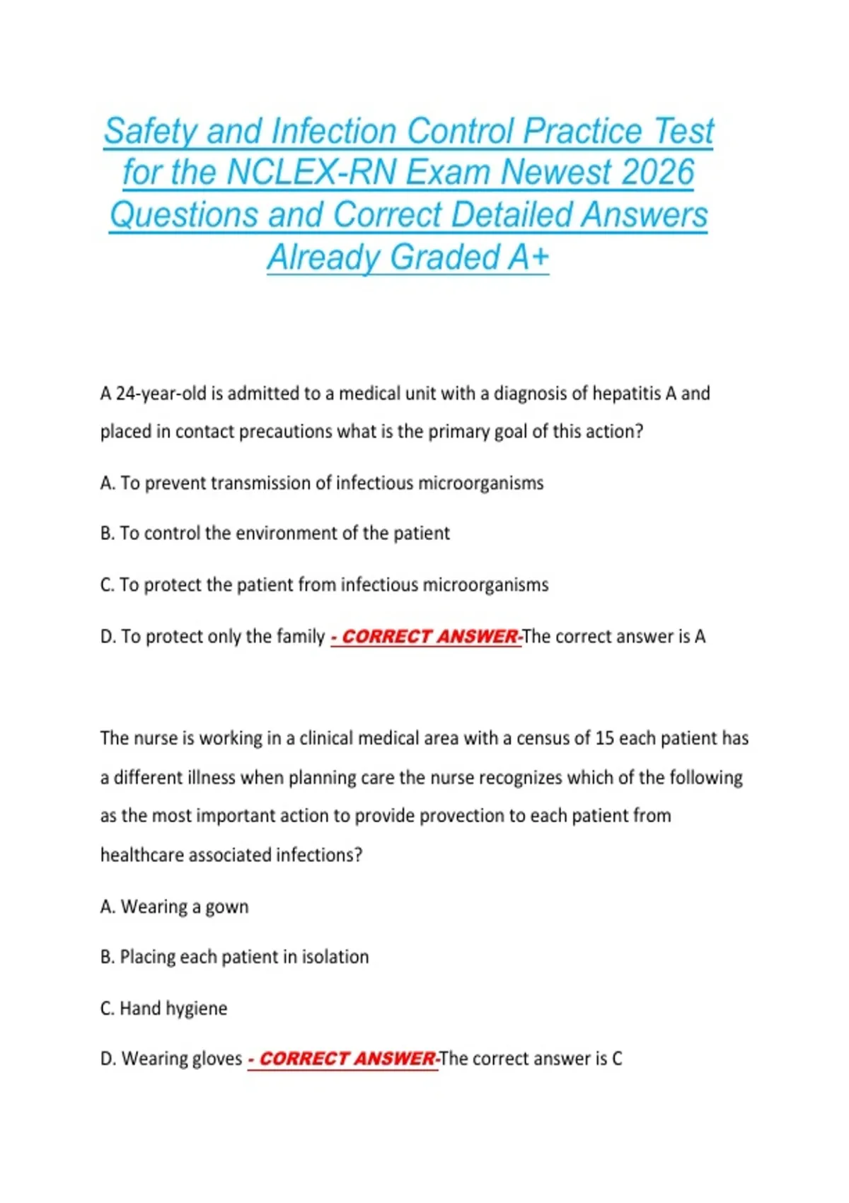 D. Wearing gloves - CORRECT ANSWER-The correct answer is C