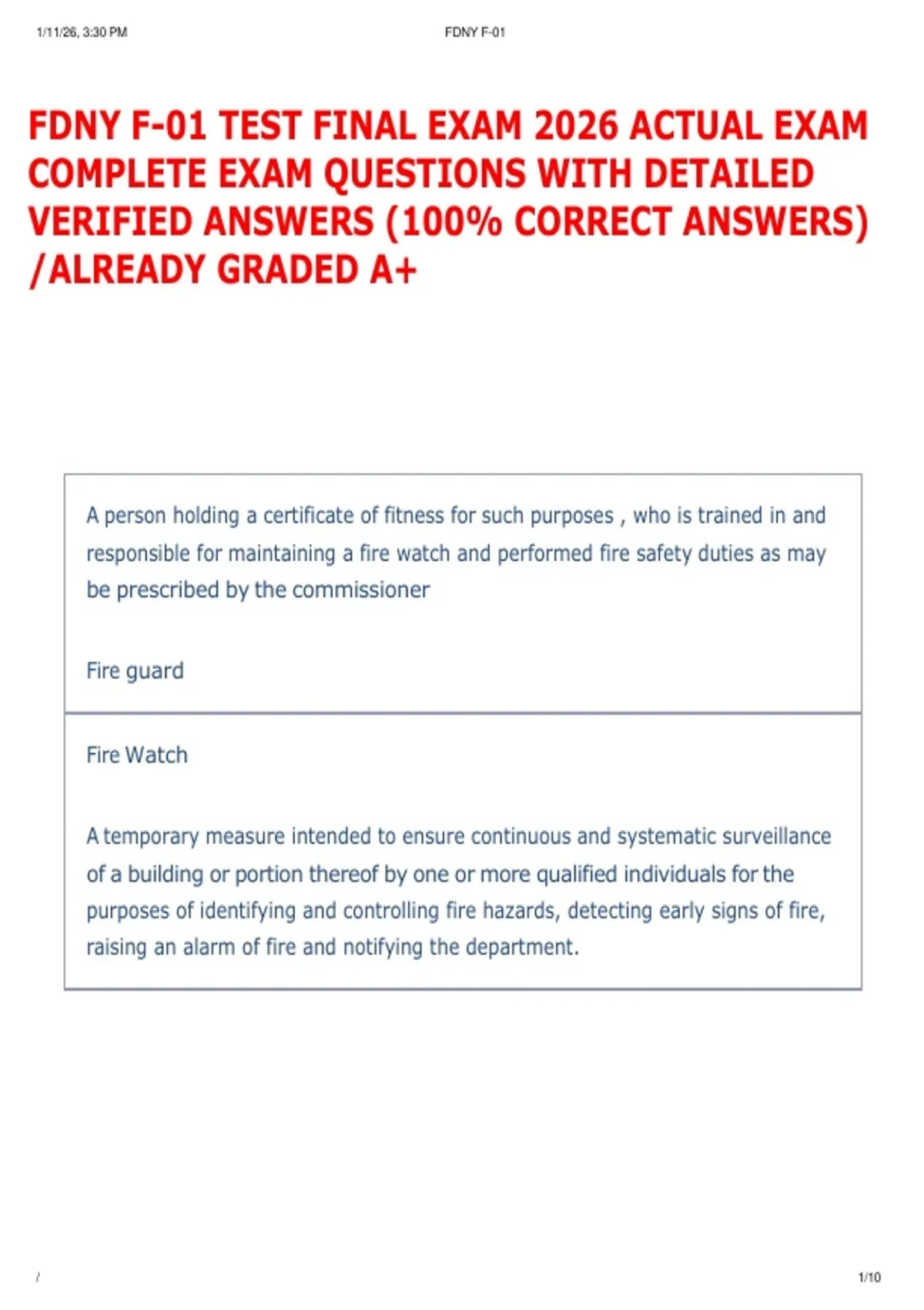 FDNY F-01 TEST FINAL EXAM 2026 ACTUAL EXAM