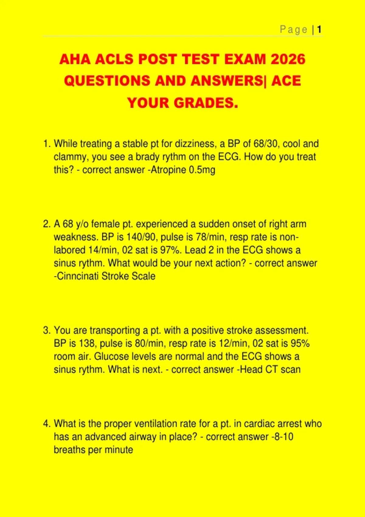 AHA ACLS POST TEST EXAM 2026 QUESTIONS AND ANSWERS| ACE YOUR GRADES.